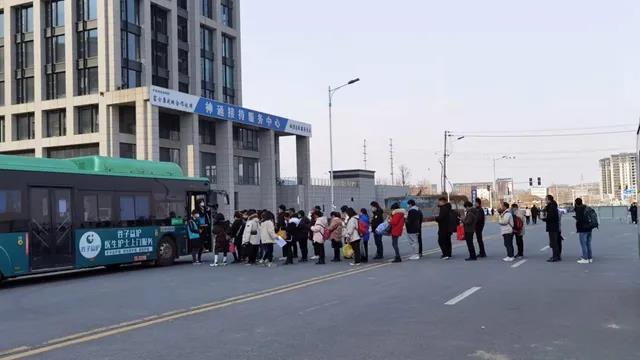2月7日上午,第一財經記者在上述公告中提及的其中一個面試地點,即富士康國貿招募中心看到,雖然是正式上班第一天,空氣中彌散著凜冽寒意,但已有不少求職者慕名而來;一些已經面試通過的員工,脖子上戴著已經拿到的工牌,排隊等候前往宿舍的班車。