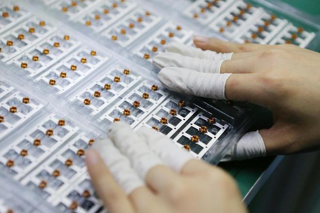 資料圖。俄羅斯米克朗工廠生產的電子護照微芯片