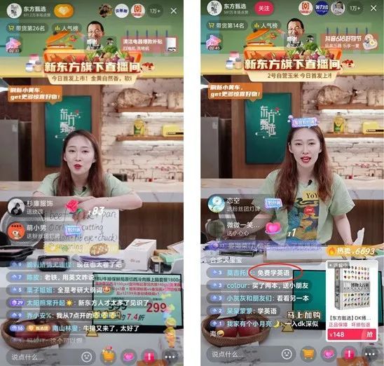 直至今年6月份以來(lái),“新東方直播間”隊(duì)伍登場(chǎng),帶貨主播們?cè)谥辈ラg聊人生、聊際遇、聊詩(shī)詞、聊理想,用標(biāo)準(zhǔn)的英語(yǔ)發(fā)音談莎士比亞的十四行詩(shī),邊教英語(yǔ)邊賣貨,瞬間圈粉無(wú)數(shù)。網(wǎng)友直呼,這就是直播帶貨的天花板。