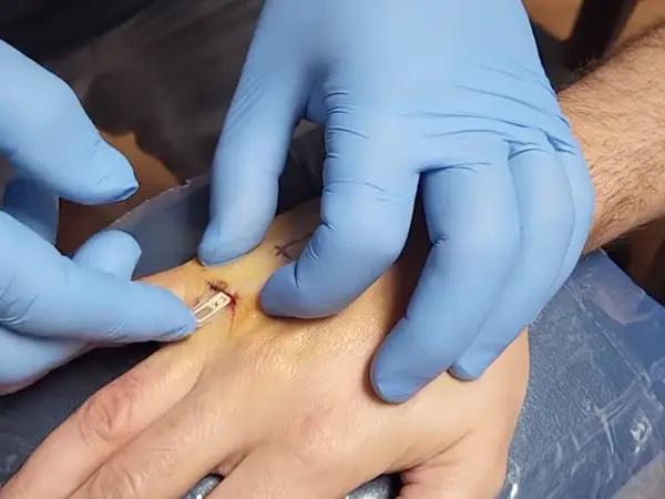 他的左手植入了一個更小的芯片,里面存儲著聯(lián)系方式和醫(yī)療信息,以及家門的鑰匙。
