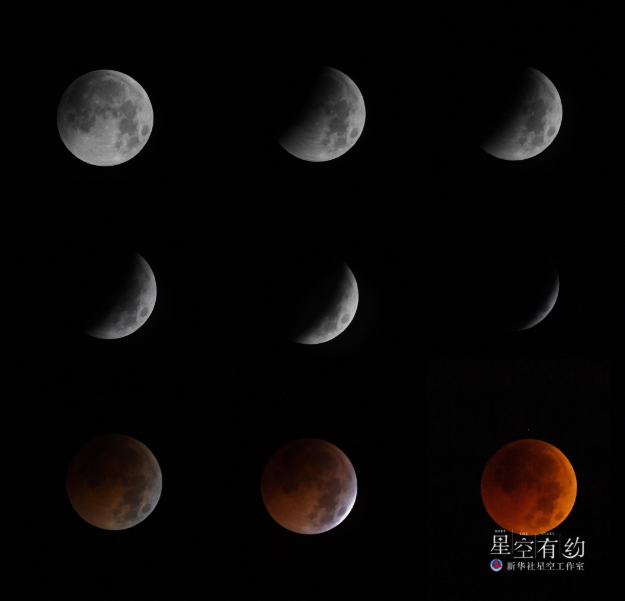 這是2018年7月28日在貴州省仁懷市拍攝的月全食過程(拼版照片)。新華社發(fā)(陳勇 攝)
