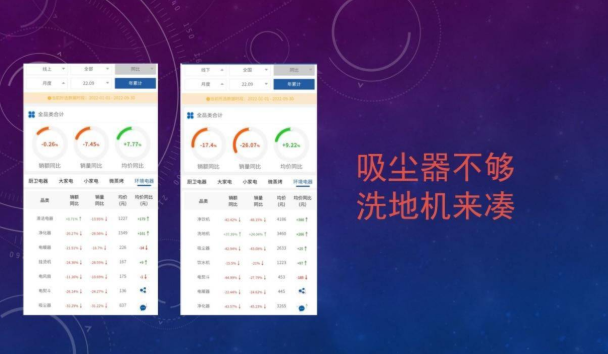 就垂直的清潔電器市場來看,同樣十分低迷。線上市場,清潔電器銷售額同比微幅增長0.71%,銷量同比下滑13.95%;線下市場,則是額量齊跌,分別同比下滑8%、22.74%。