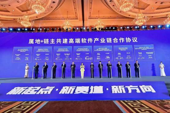 今年以來,軟件領域已新簽約19個重大項目,累計投資金額約447.5億元。本次主題大會現場舉行了軟件產業重大項目和屬地+鏈主共建高端軟件產業鏈合作協議簽約儀式,現場簽約優卡集團總部項目、成都數聚智造人工智能總部項目等11個重大項目。