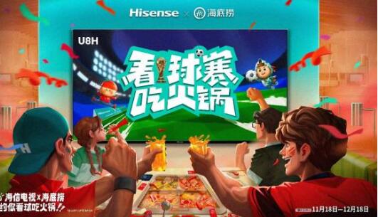 在店內,海信與海底撈將聯合打造3家世界杯主題店(海底撈北京青年路店、海底撈上海覽海國際店、海底撈深圳南山茂業店),每家主題店設置5-10個海信電視移動觀賽席,配備海信電視移動觀賽神器——海信健身智慧屏X7H。每晚夜宵時段(22:00-次日早7:00),球迷撈粉到店說出暗號“看球賽,吃火鍋”,就有機會到觀賽席就餐,吃著熱氣騰騰的火鍋,C位看球,零距離感受熱辣美食與激情賽場。