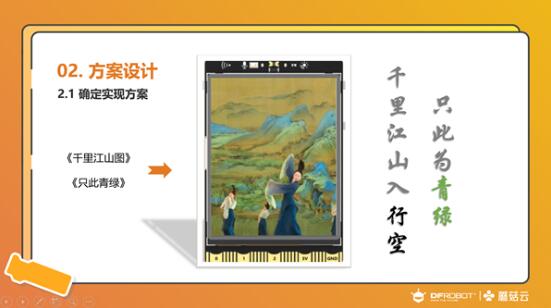 蘑菇云科創教育團隊近期推出線上直播《從零上手的行空板系列課程》 “千里江山入行空,只此為青綠”課程已在在11月10日蘑菇云創造視頻號播出,關于該課程的詳細講解,可關注蘑菇云創造視頻號深入學習,中華文化共傳承,篤行思創新。