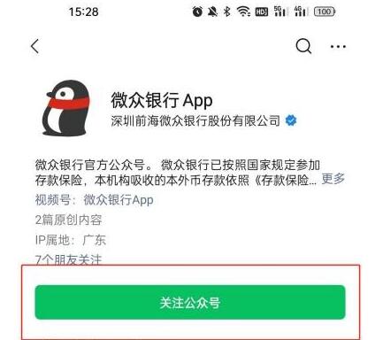 打開微信,搜索并關注“微眾銀行App”公眾號;