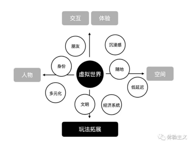 我們嘗試把Roblox在招股書里描述的8個(gè)關(guān)鍵詞:“身份,朋友,沉浸感,多樣性,低延遲,隨地,經(jīng)濟(jì),文明”進(jìn)行提煉,從虛擬世界的5個(gè)視角,對設(shè)計(jì)挑戰(zhàn)和機(jī)遇進(jìn)行總結(jié)和預(yù)測。