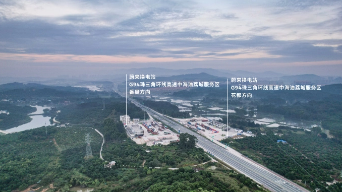 蔚來表示,今日共有兩座雙方合作的換電站上線,分別位于 G94 珠三角環(huán)線高速荔城東服務(wù)區(qū)的花都方向和番禺方向。