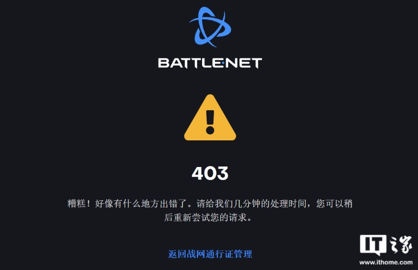 11 月 24 日消息,昨日,暴雪游戲產品國服在戰網以及客戶端內的充值服務及用戶注冊入口關閉,點擊暴雪戰網“注冊用戶”入口會跳轉至 403 錯誤頁面。