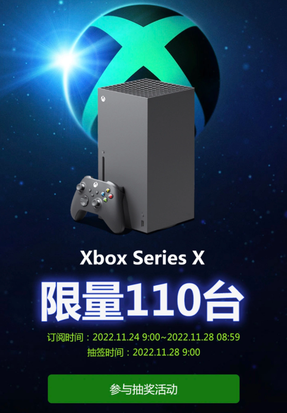 11 月 24 日消息:微軟官方商城再次開啟 Xbox Series X 國行抽簽購買活動,限量 110 臺,感興趣的玩家可前往微軟官方微信小程序參與活動。