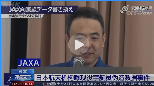 11月26日消息:日本造假風十分嚴重,現在又出來了航天機構曝現役宇航員偽造數據事件。
