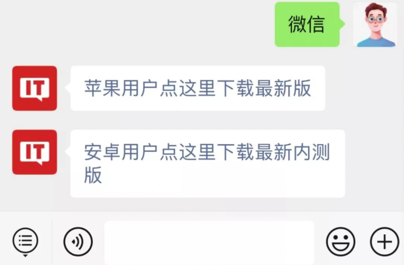 大家在IT之家微信號回復“微信”兩字,即可獲取當前最新官方內部版微信下載。