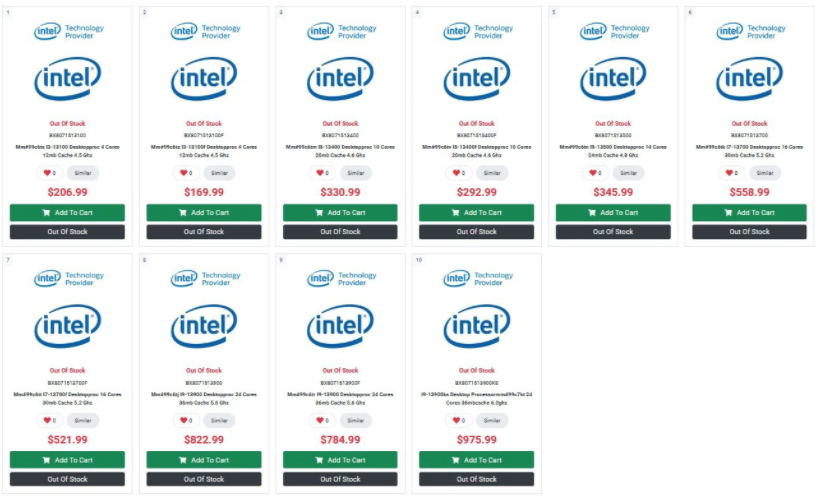 此外,該電商平臺(tái)還曝光了英特爾即將發(fā)布的 13 代酷睿非 K 系列處理器,包括 i3-13100 到 i9-13900,售價(jià)在 170 美元(約 1221 元人民幣)到 785 美元(約 5636 元人民幣),僅供參考。