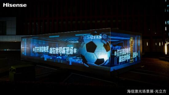 在“光立方”的外立面,海信精心打造了世界杯主題裸眼3D光影秀,霸屏光立方128㎡巨幕。通過借助3D技術和數字藝術,光影秀以逼真的色彩和具有沖擊力的視覺效果,展現足球、藝術、科技三者交融的強大魅力,為觀眾帶來震撼的視覺體驗。