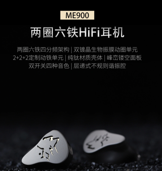12 月 1 日消息:山靈音響發布了一款新的 HiFi 耳機 —— 山靈 ME900.采用兩圈六鐵四分頻架構,在去年 ME800 的基礎上進行了多項改進,將于本月上旬發售。