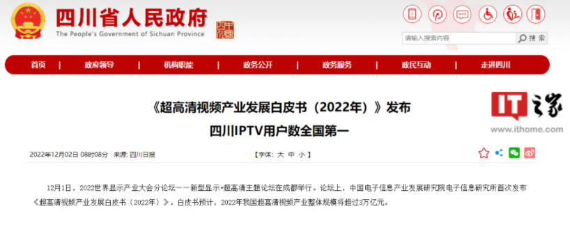 原標題:四川 IPTV 用戶數全國第一,《超高清視頻產業發展白皮書(2022 年)》發布