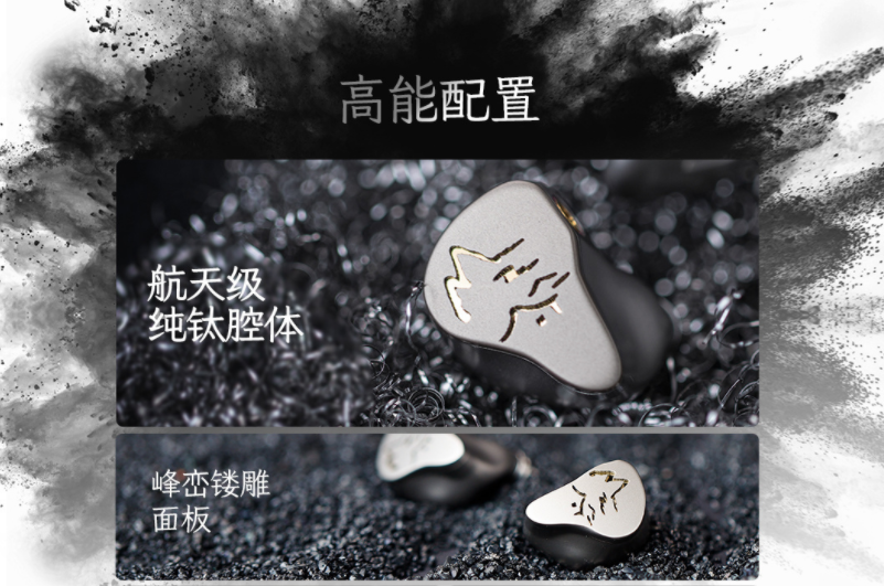 這款耳機采用八單元四分頻架構、雙鍍晶生物振膜動圈單元、2 中頻 + 2 高頻 + 2 極高頻動鐵單元、航天級純鈦腔體、層遞式不規則諧振腔、峰巒鏤雕面板、雙開關四種音色、高純度可換頭單晶銅線材、人體工學設計。