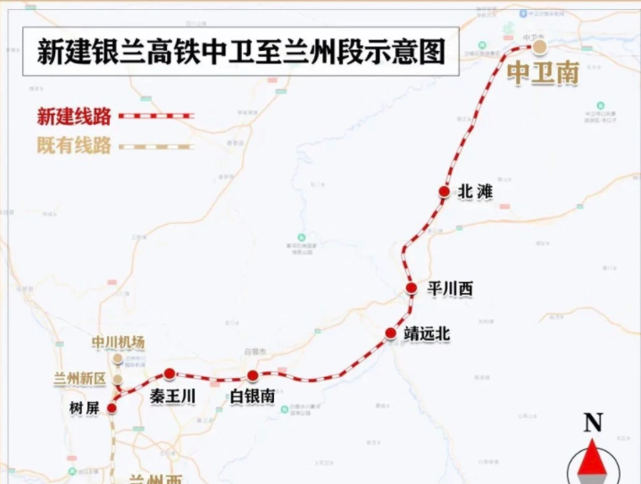 IT之家了解到,銀蘭高鐵是我國“八縱八橫”高速鐵路網京呼銀蘭通道的重要組成部分。銀蘭高鐵中蘭段東自中衛南站引出,西經蘭州新區接至蘭州樞紐,設計時速 250 公里,全長約 219 公里。