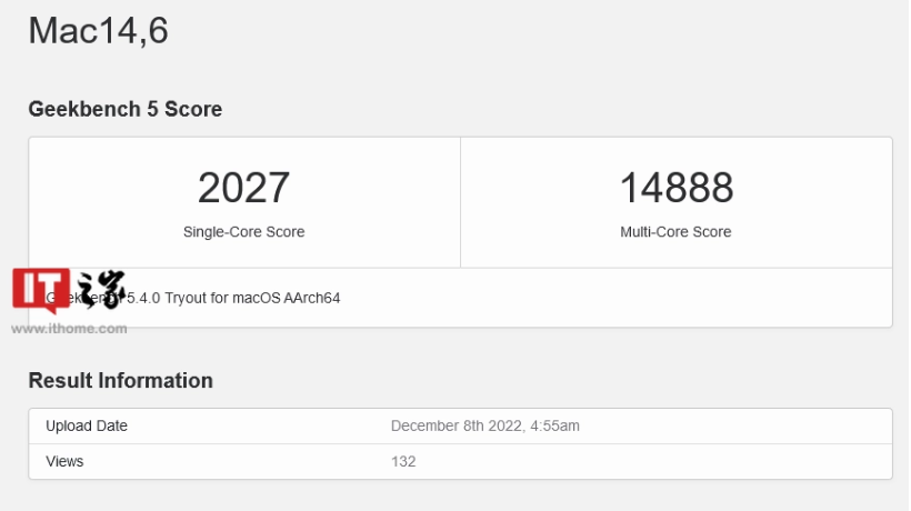 12 月 9 日消息:Geekbench 跑分平臺上周曝光了蘋果尚未發(fā)布的 M2 Max 芯片,單核處理器成績?yōu)?1889 分,多核成績?yōu)?14586 分。而該平臺再次曝光了 M2 Max 芯片的最新跑分成績,單核處理器成績?yōu)?2027 分,多核成績?yōu)?14888 分,單核成績提升明顯。