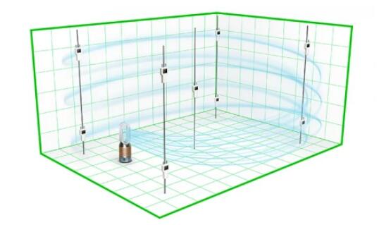 POLAR測試來源于真實的生活洞察。戴森工程師們發現消費者習慣將空氣凈化設備置于家中一隅,而非房間中心這一習慣。這一使用習慣可能對空氣凈化設備的整屋均勻凈化表現帶來挑戰。因此,戴森在2017年開發了POLAR測試,該測試在一個81立方米的實驗室內開展,這一居室大小較接近中國家庭的平均居住環境。在不安裝附加混流風扇的情況下,工程師將空氣凈化設備放置在一角,并采用9個傳感器持續監測整屋的空氣質量數據,評估空氣凈化設備的過濾表現、傳感性能以及整屋均勻凈化效果,保障其在真實生活場景中的空氣凈化能力。