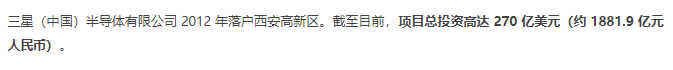 三星(中國(guó))半導(dǎo)體有限公司 2012 年落戶西安高新區(qū)。截至目前,項(xiàng)目總投資高達(dá) 270 億美元(約 1881.9 億元人民幣)。