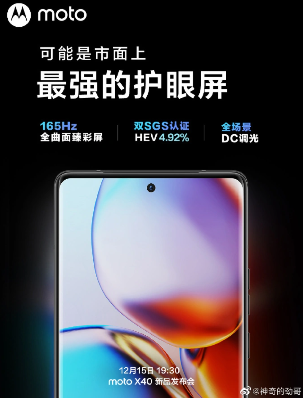 12 月 14 日消息:摩托羅拉 Moto X40 將于明天 19:30 發布,今天官方對新機的屏幕進行了預熱。