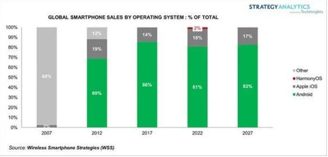 華為的鴻蒙系統在發布3年之后終于占住了一席之地。據研究機構Strategy Analytics最新報告預測,今年鴻蒙系統系統手機全球份額將達到2%,正式開啟與iOS、Android三分天下的局面。