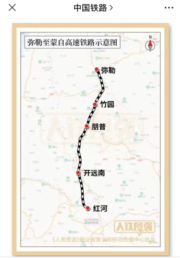 12 月 15 日消息:據“中國鐵路”公眾號消息,彌勒至蒙自高速鐵路(簡稱“彌蒙高鐵”)將于 12 月 16 日開通運營。