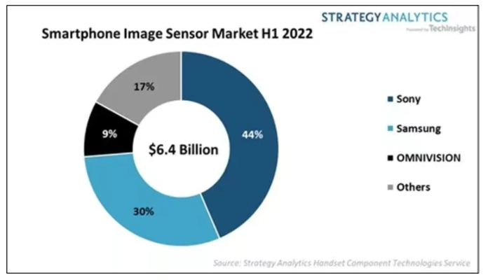 據稱,索尼半導體解決方案以 44% 的收入份額位居榜首,三星系統 LSI 和 OMNIVISION 緊隨其后。索尼、三星和 OMNIVISION 占據了全球智能手機圖像傳感器市場近 83% 的收入份額。