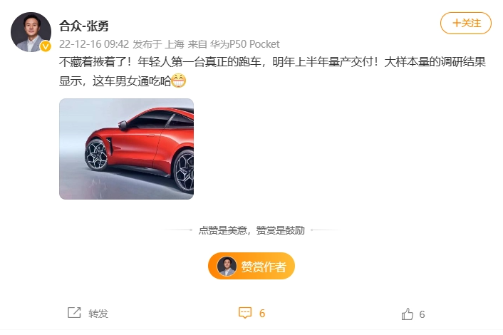 原標(biāo)題:合眾汽車 CEO 張勇宣布哪吒 E 將于 2023 年上半年交付