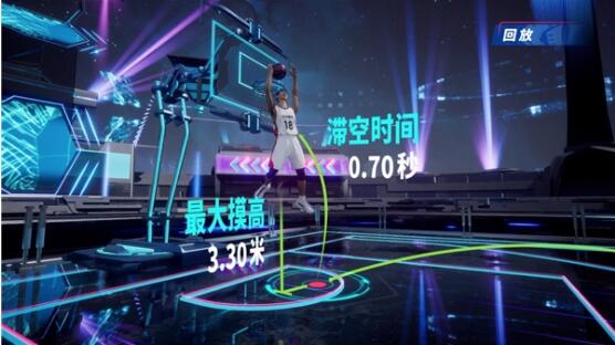 在觀賽回放環(huán)節(jié),除了常規(guī)視角,觀眾更能獲得諸如籃框、地板等非傳統(tǒng)觀賽視角,大大增加了觀眾的沉浸感和趣味性……同時,觀眾還可得到如摸高高度、滯空時間等關鍵信息。