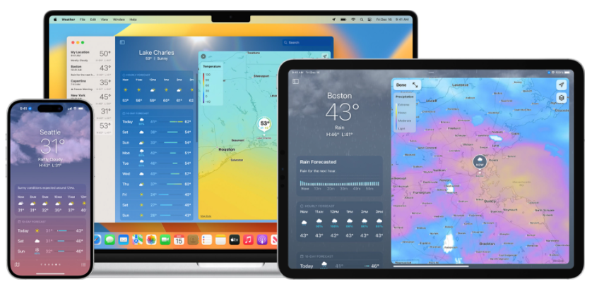 蘋果還稱,新的自帶天氣應(yīng)用還提供高分辨率的天氣圖,以及超本地化的天氣預(yù)報(bào),精確到 0.001° 的經(jīng)緯度。這種分辨率不僅用于生成用戶所在城鎮(zhèn)的預(yù)報(bào),還用于生成用戶所在街區(qū)的預(yù)報(bào)。還可以通知用戶何時(shí)開始降水,精確到分鐘。