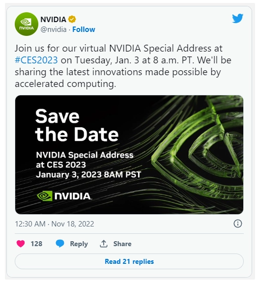 原標題:英偉達和 AMD 官宣 CES 2023 主題演講,定檔 1 月 4 日