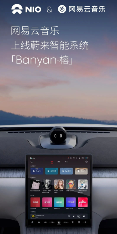 12 月 21 日消息:在線音樂平臺網易云音樂已正式登陸蔚來汽車智能系統「Banyan?榕」。