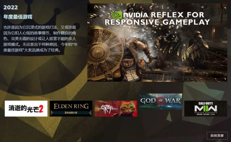 2022 年度最佳游戲:《消逝的光芒 2》、《艾爾登法環》、《迷失》、《戰神》(2018)、《使命召喚:現代戰爭 2》