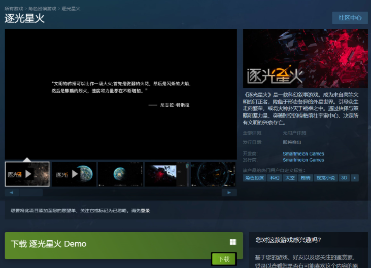 12 月 23 日消息:由 Smartmelon Games 開發的科幻敘事游戲《逐光星火》試玩版近日上線 Steam 商城,即將發售,支持簡體中文。