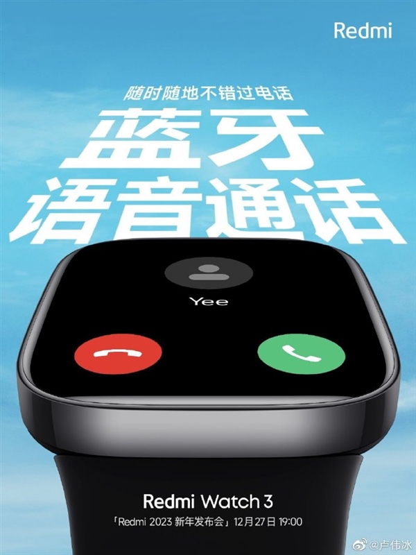 12月27日,Redmi Watch 3正式發布,順應可穿戴大屏化潮流,升級1.75英寸高清AMOLED大屏,支持121種運動模式,售價499元。