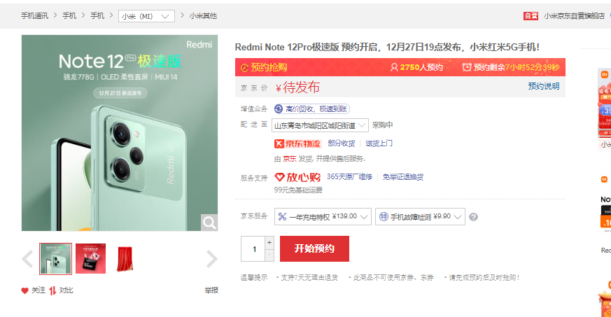 Redmi Note 12 Pro極速版提供三種配置,6+128GB 1699元、8+256GB 1999元(年貨節1799元)、12+256GB 2199元(年貨節1999元)。