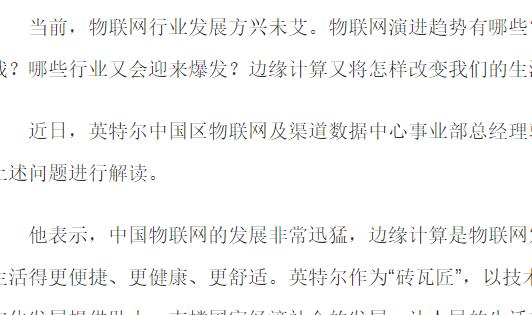 “英特爾提供了能夠支撐物聯(lián)網(wǎng)或者邊緣計算發(fā)展的最基礎的計算能力,與合作伙伴一起把計算能力變成設備,支撐應用。”郭威說,“英特爾就是‘磚瓦匠’,通過做好最底層的‘一磚一瓦’去支撐我們的客戶。”