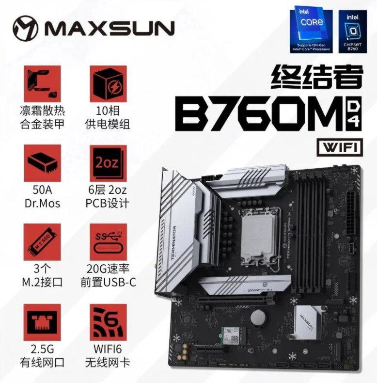 1 月 4 日消息,銘瑄終結者 B760M D4 WIFI 型號現已上架,售價 899 元。