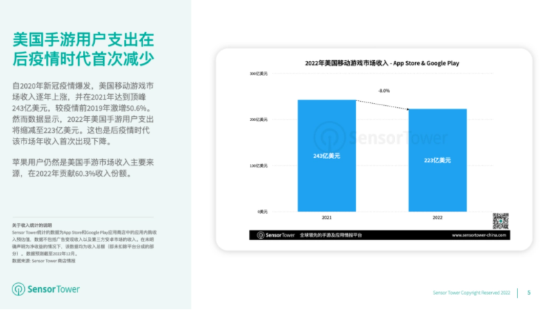原標(biāo)題:2022 年美國(guó)手游用戶支出首次縮減至 223 億美元,《原神》出海吸金超 2 億美元登頂