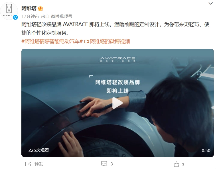 1 月 4 日消息,阿維塔汽車宣布,旗下改裝品牌 AVATRACE 即將上線,溫暖前瞻的定制設計,為你帶來更輕巧、便捷的個性化定制服務。