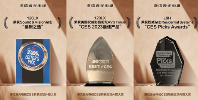 據悉,海信此次重磅亮相全球的首款8K激光電視產品120LX獲得美國權威家庭影音論壇AVS Forum的“CES 2023最佳產品”獎、Sound & Vision雜志“編輯之選”獎;激光電視L9H也獲得權威雜志Residential Systems的“CES Picks Awards”獎。