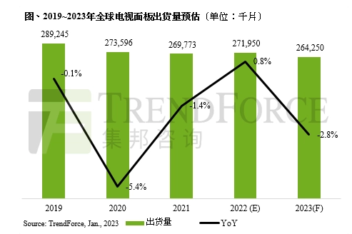 原標題:TrendForce:預計 2023 年全球電視面板出貨量達 2.64 億片,同比減少 2.8%