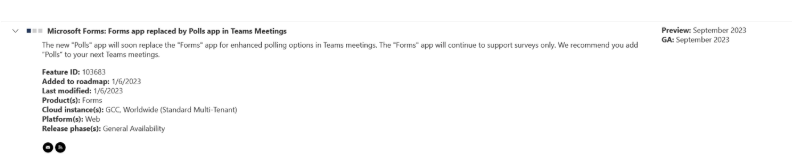 微軟早在去年就曾表示這項改動,只是當時微軟官方并未公布具體的上線日期。根據 Microsoft 365 路線圖頁面,微軟計劃在今年 9 月改用 Polls 應用。它將首先作為預覽版推出,在得到用戶的反饋后,Teams 然后再陸續全面鋪開。