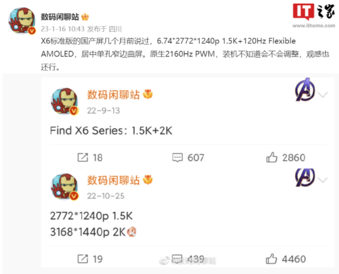 1 月 16 日消息,據(jù)數(shù)碼博主 @數(shù)碼閑聊站 爆料,OPPO Find X6 標(biāo)準(zhǔn)版采用 6.74 英寸 1.5K 國產(chǎn)屏,擁有 2772×1240 分辨率。