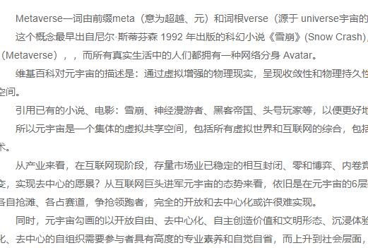 對(duì)元宇宙提出的困惑與不定,還是因?yàn)槿狈φJ(rèn)識(shí),“盡管人們對(duì)元宇宙充滿(mǎn)幻想,但這個(gè)術(shù)語(yǔ)沒(méi)有統(tǒng)一的定義或描述。大多數(shù)行業(yè)領(lǐng)導(dǎo)者以符合他們自己的世界觀(guān)或能彰顯自己公司能力的方式來(lái)定義它。”