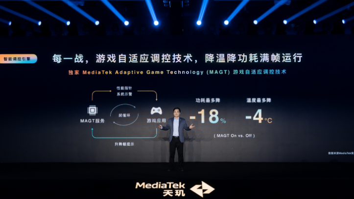 GPU 的性能決定了移動芯片圖形渲染能力的上限,是提升移動端游戲體驗的關鍵。天璣9200移動芯片搭載了全新一代Arm Immortalis-G715旗艦11核GPU,帶來性能和能效的大幅躍進,為移動游戲持續高畫質、高幀率提供核心動力。同時,天璣9200率先支持移動端硬件光追技術,并擁有獨家的游戲自適應調控技術(MediaTek Adaptive Game Technology,MAGT)。兩者被行業視為加速移動游戲生態發展的助推器,在芯片、終端、游戲生態全鏈路的通力合作下,聯發科天璣開始由技術領先轉為趨勢引領。
