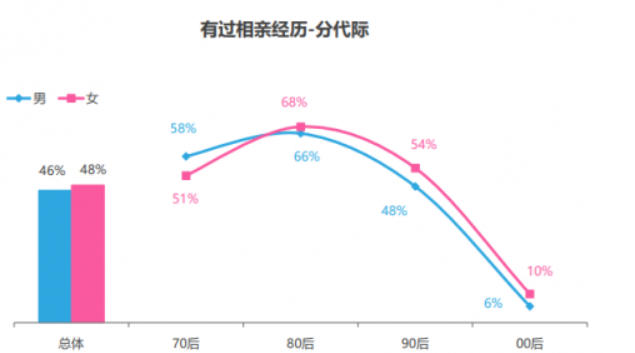 同樣顯著降低的還有“初次性行為”平均年齡?!秷?bào)告》顯示,“70后”男性為23.4歲,女性為23.6歲。隨后呈現(xiàn)逐漸走低的態(tài)勢(shì)。至“00后(18歲以上人群)”,已降至男性平均18.9歲,女性平均18.7歲。然而,雖然平均年齡在下降,但是人群整體“性安全意識(shí)”卻在不斷提升。在“初次性行為時(shí)主動(dòng)采取安全措施”的選項(xiàng)上,男性“70后”最低,為59%。隨即逐漸上升,至“00后”已達(dá)78%。而女性的自我保護(hù)意識(shí)則更加明顯,從“70后”的53%,大幅升至“00后”的80%,并且直接超越了男性占比。