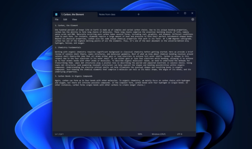 通過此更新,微軟記事本增加了對多個標簽頁的支持,用戶將能夠在單個記事本窗口中創建、管理和組織多個文件。還可以通過將標簽頁拖出到其自有窗口來繼續跨多個窗口處理文件,并且新的應用程序設置允許自定義默認情況下文件是在新標簽頁中打開還是在新窗口中打開。